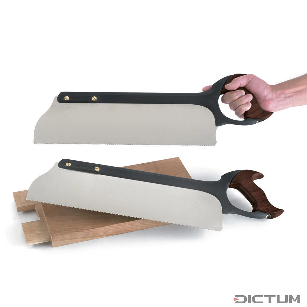Fabriquées au Canada, ces scies sont composées d’une lame contenant une grande part de carbone. Le dos massif est en alliage d’acier inoxydable, fibre de verre et résine polymère très résistant, qui confère à la scie un bon équilibre et permettent un maniement aisé. Pour une meilleure stabilité, la lame traverse le manche. Le manche en D fermé permet également un contrôle exceptionnel malgré les dimensions imposantes de la scie. La poignée laquée en bois précieux est assurée par un boulon acier inoxydable et un écrou en laiton.